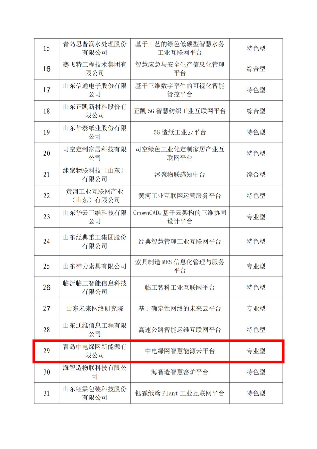 近日,山東省工業和信息化廳公示2023年省級工業互聯網平臺名單,青島中電綠網新能源有限公司自主研發的“中電綠網智慧能源云平臺”,成功獲評省級專業型重點平臺。